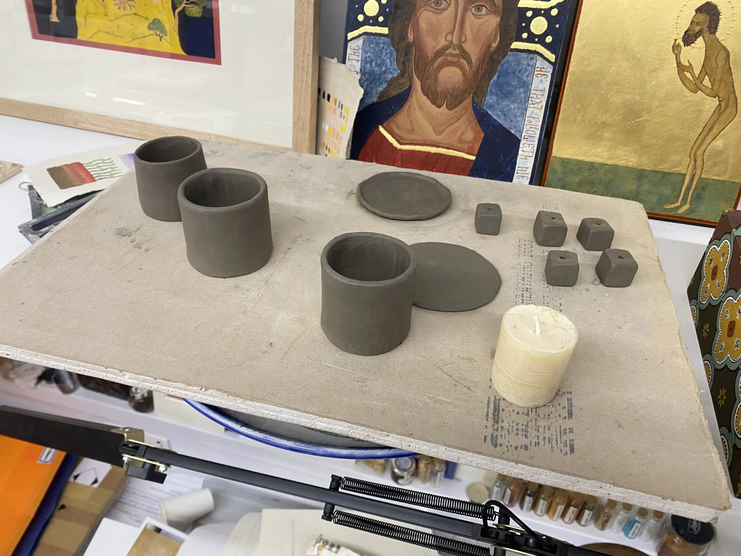 Clay cups for holding water on the shrine